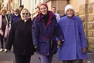 We also met an 80 year old lady from Cairns who was walking with her daughter. When she was bringing up her family in Cairns, if you needed domestic help you went to the police station who would allocated you aboriginal workers. As the daughter had grown up she had realised that there was something wrong with the way aboriginals were treated. She learned about the stolen generations and had convinced her mother that the domestic help she had employed, and perhaps exploited, must have been from the stolen generations. Here they both were walking across the bridge in solidarity with the aboriginal cause and very exhilarated to be able to express there sorrow and regret in a meaningful way. I photographed them with Jean as we were walking down to Circular Quay after the walk.